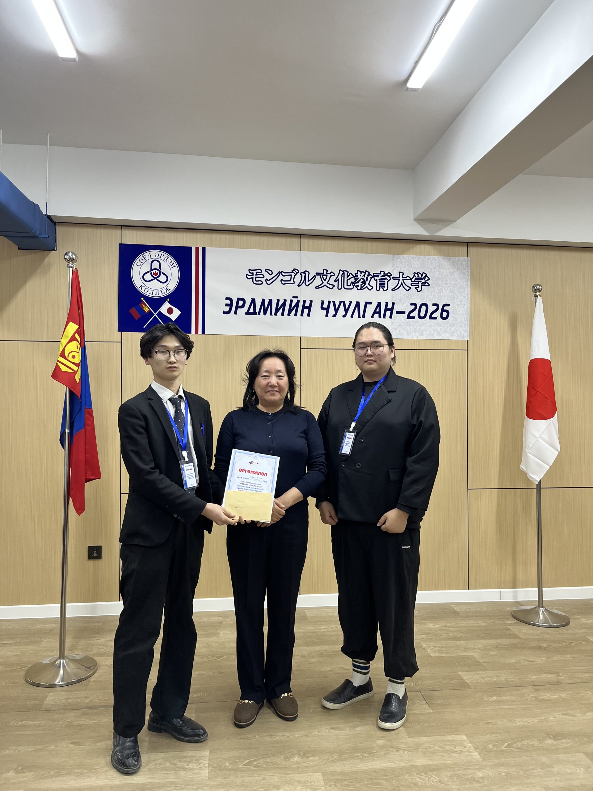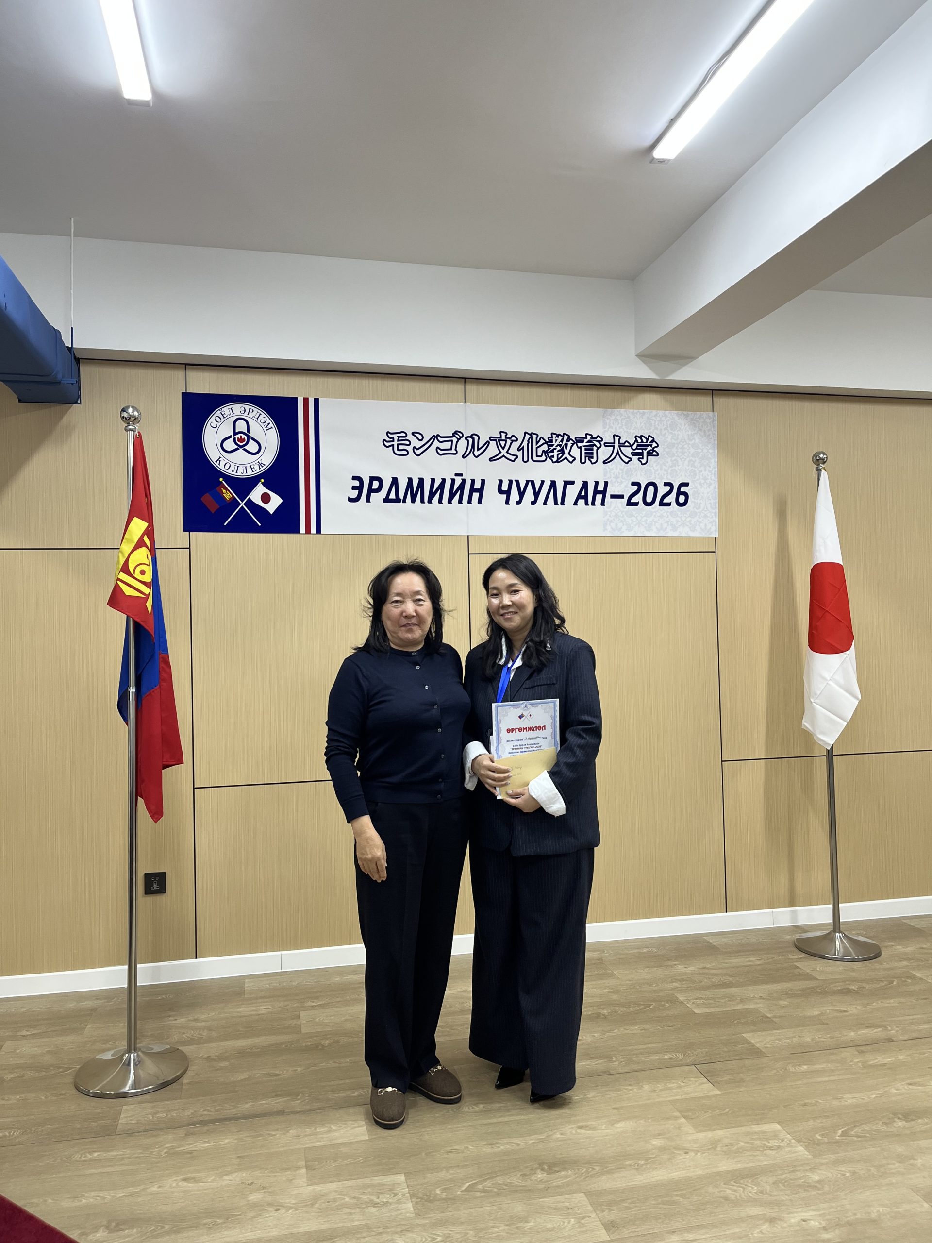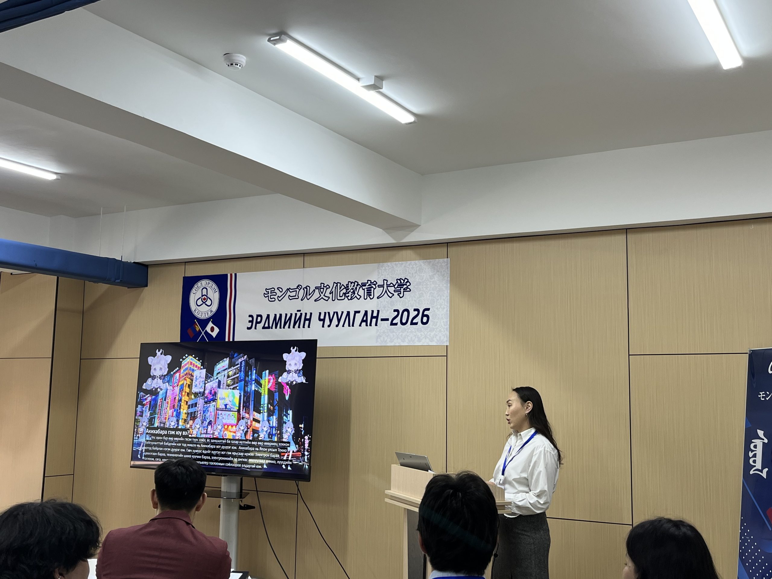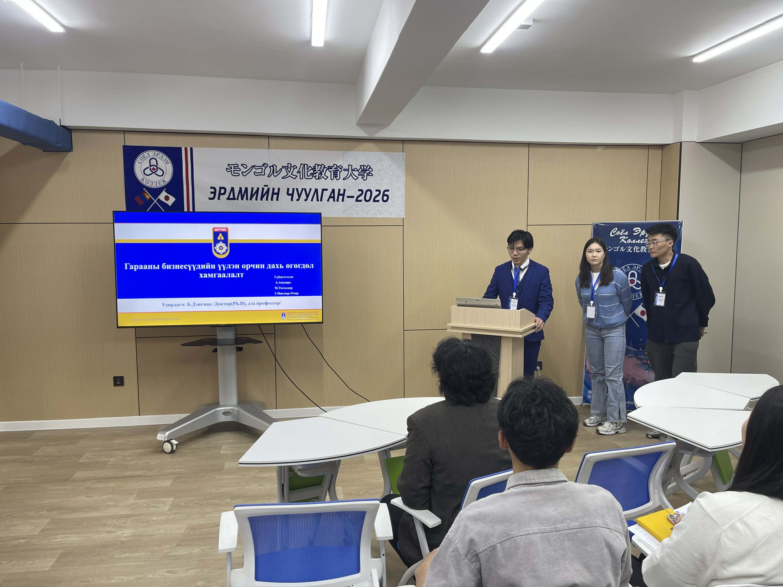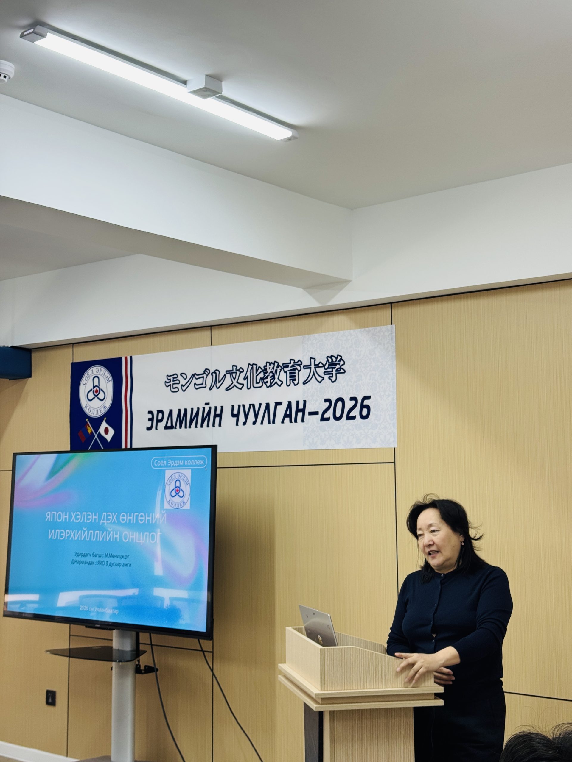 ЭРДМИЙН ЧУУЛГАН-2026-Оюутны эрдэм шинжилгээний бага хурал нь үндсэн хоёр салбараар хуралдсан ба I салбар нь “Гадаад хэл шинжлэл, Хүмүүнлэгийн ухаан” байв. Энэ салбарт СЭДС- ийн Гадаад хэлний орчуулагчийн 3-р курсийн оюутан Д.Нармандах “Япон хэл дэх өнгөний илэрхийллийн онцлог” (Удирдсан багш, СЭДС, докторант М.Мөнхцэцэг), Б.Баянбилэг “Япон-Монгол хэлний мэргэжлийн орчуулга дахь нэр томьёоны эквивалентын асуудалд” (Удирдсан багш СЭДС, доктор, профессор Ц.Пүрэвсүрэн), Л.Анхтуяа “Акихабара дүүрэг хот болох нь” (Удирдсан багш, СЭДС, докторант М.Мөнхцэцэг), Программ хангамжийн 2-р курсийн оюутан М.Мөнххүслэн “Нийгмээс хөндийрөх үзэгдлийн тухайд” (Удирдсан багш, СЭДС, докторант М.Мөнхцэцэг), Аялал жуулчлалын 1-р курсийн оюутан Ц.Нандин-Эрдэнэ, Э.Хувьтөгөлдөр нар “Аялал жуулчлалыг төвийн бүсэд хөгжүүлэх боломж: Дархан хотын жишээн дээр” (Удирдсан багш доктор, профессор Н.Галиймаа) зэрэг сонирхолтой илтгэл хэлэлцүүллээ.